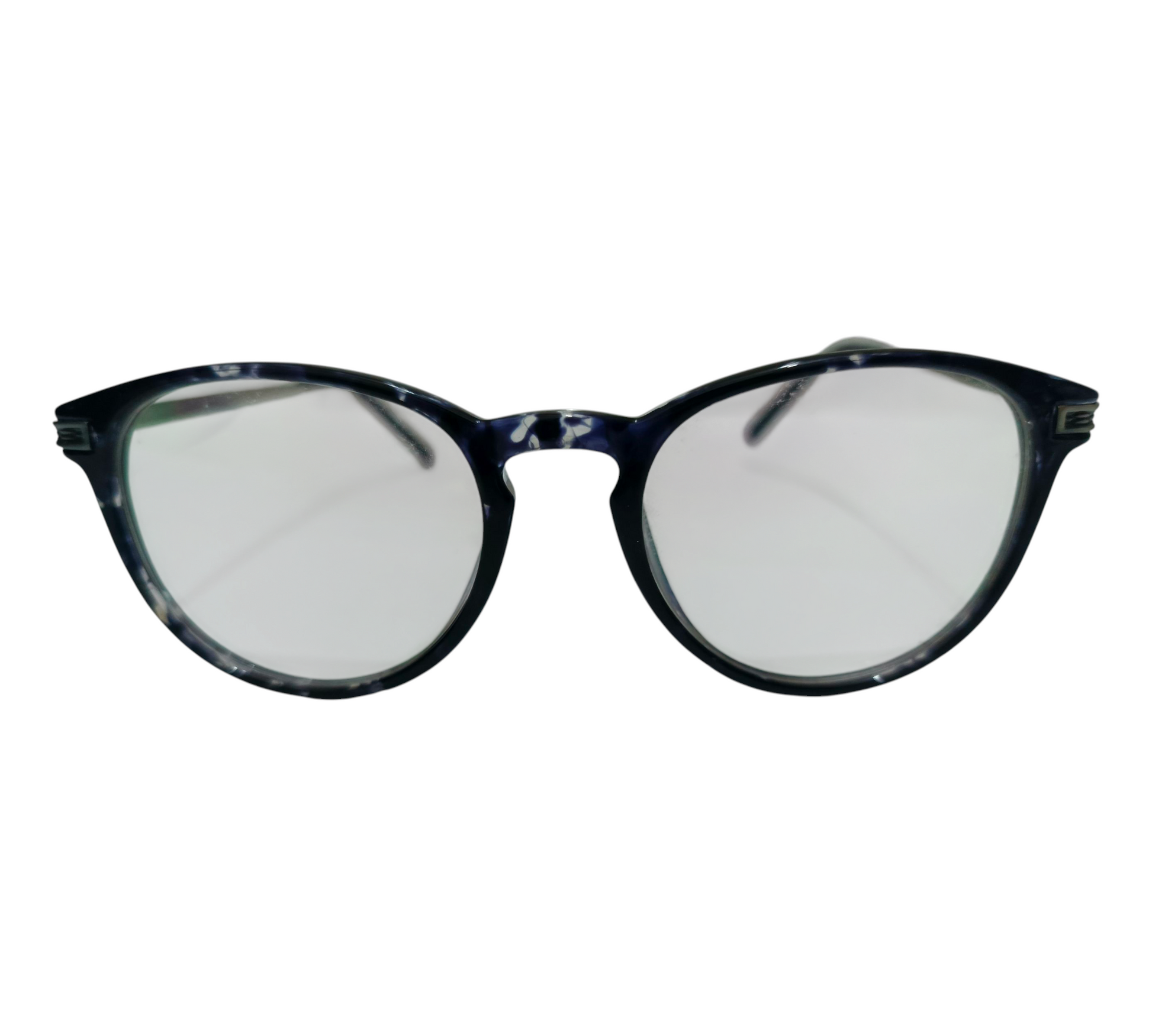 Elevate your eyewear game with these modern round frames featuring a subtle, speckled blue pattern. The contemporary design is versatile enough for both professional and casual settings, offering a fresh take on a classic shape. With comfortable black temples, these glasses are designed for all-day wear, providing both style and clear vision.