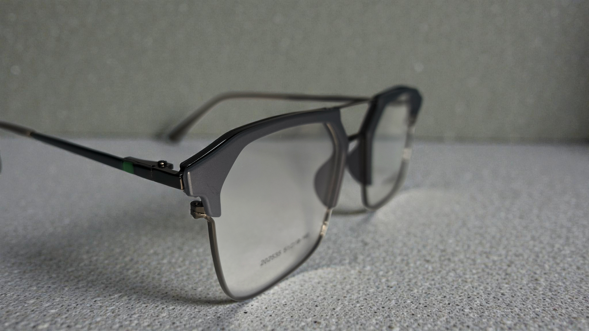Charcoal grey front with dark silver lower rim & bridge having dark grey temples color urban Architect:FIALLVI Geometric Frame by Bird Eye Optics Emart
