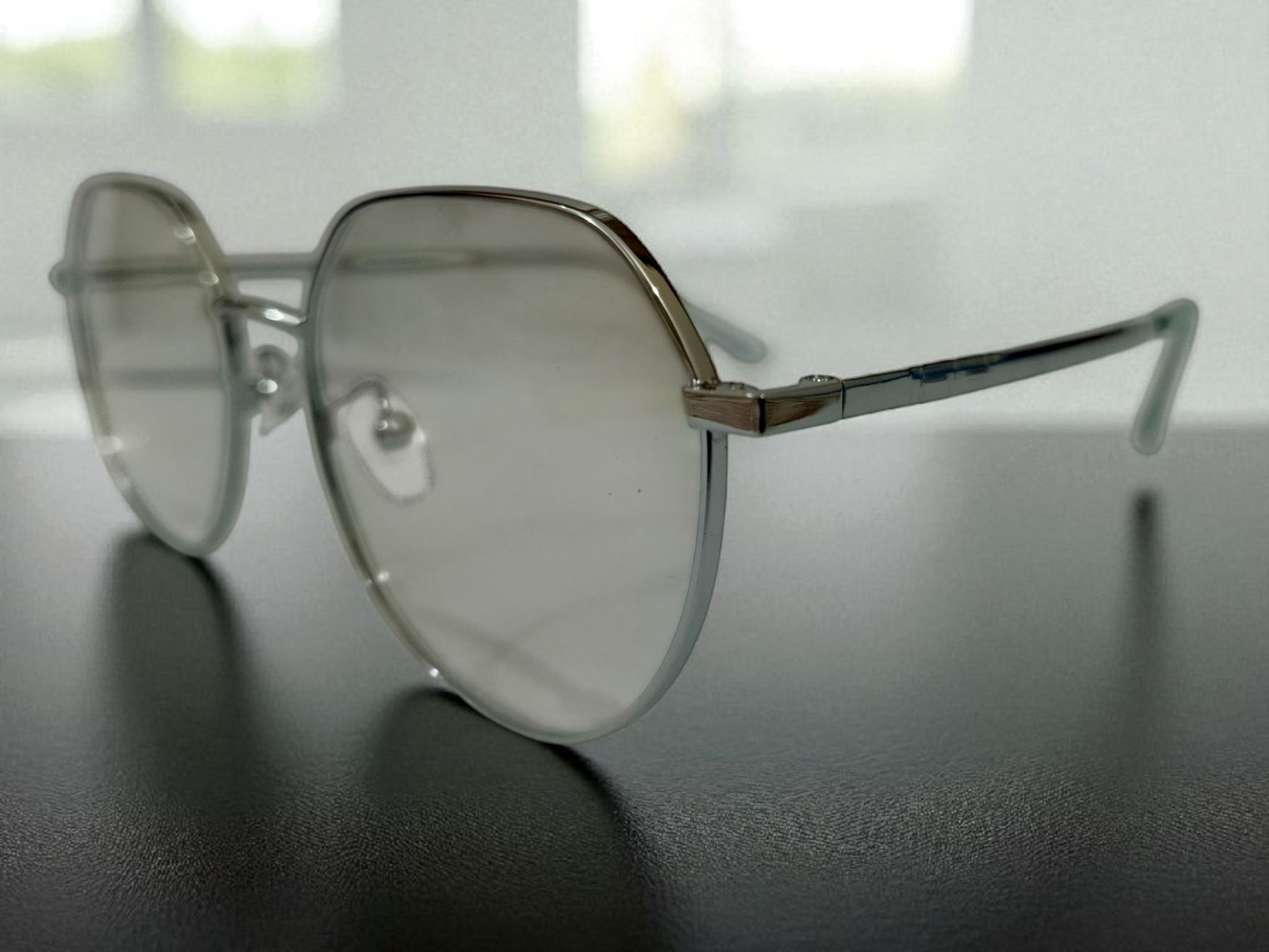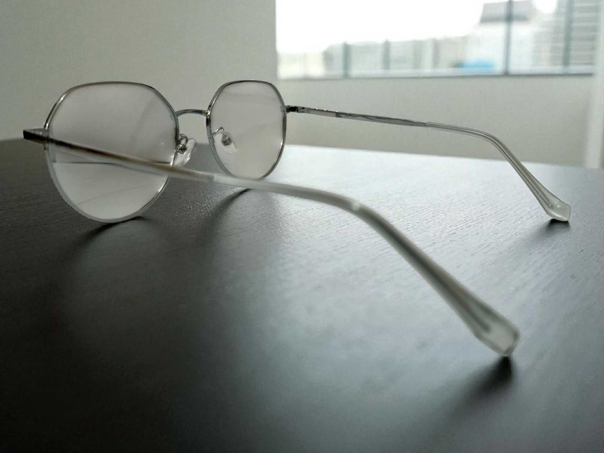 Embrace understated elegance with these minimalist silver octagon eyeglasses. The slender metal frame in a refined gunmetal hue offers a clean, contemporary aesthetic that complements any face shape. Simple yet sophisticated, these glasses are perfect for adding a touch of chic professionalism or everyday coolness to your ensemble.