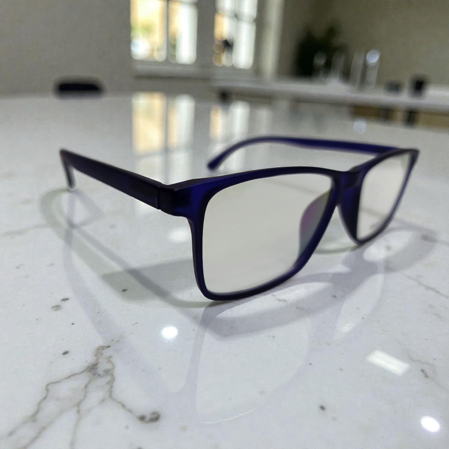 Moon Star "Azure Dusk" Premium Matte Navy Rectangular Eyeglasses : Lightweight Unisex Frames