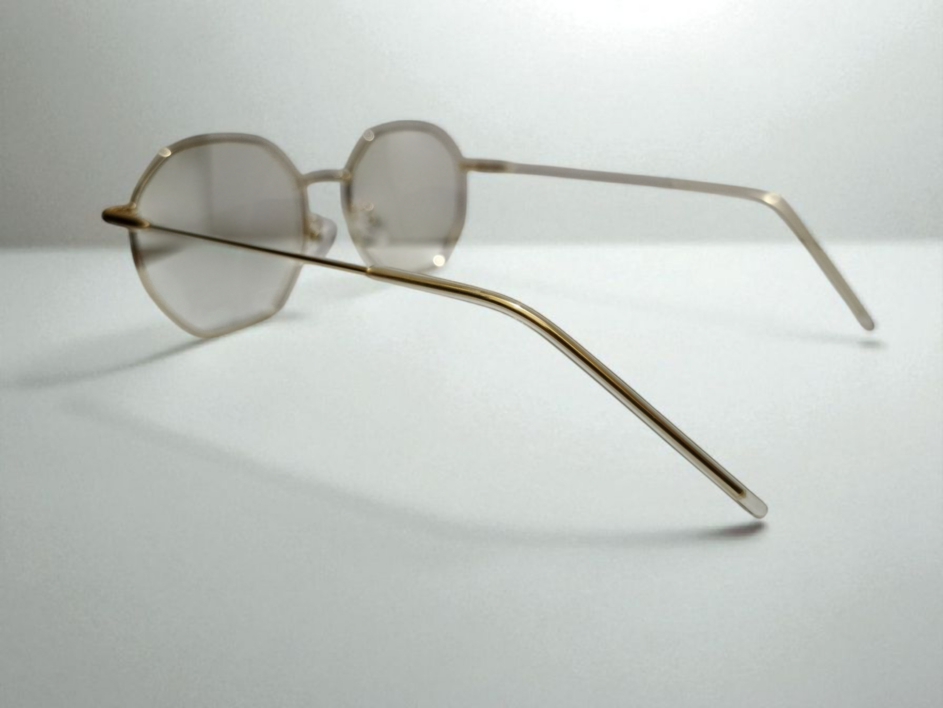 Premium Octagon Rimless Eyewear – Golden Frame with Gradient Lenses | Bird Eye Optics