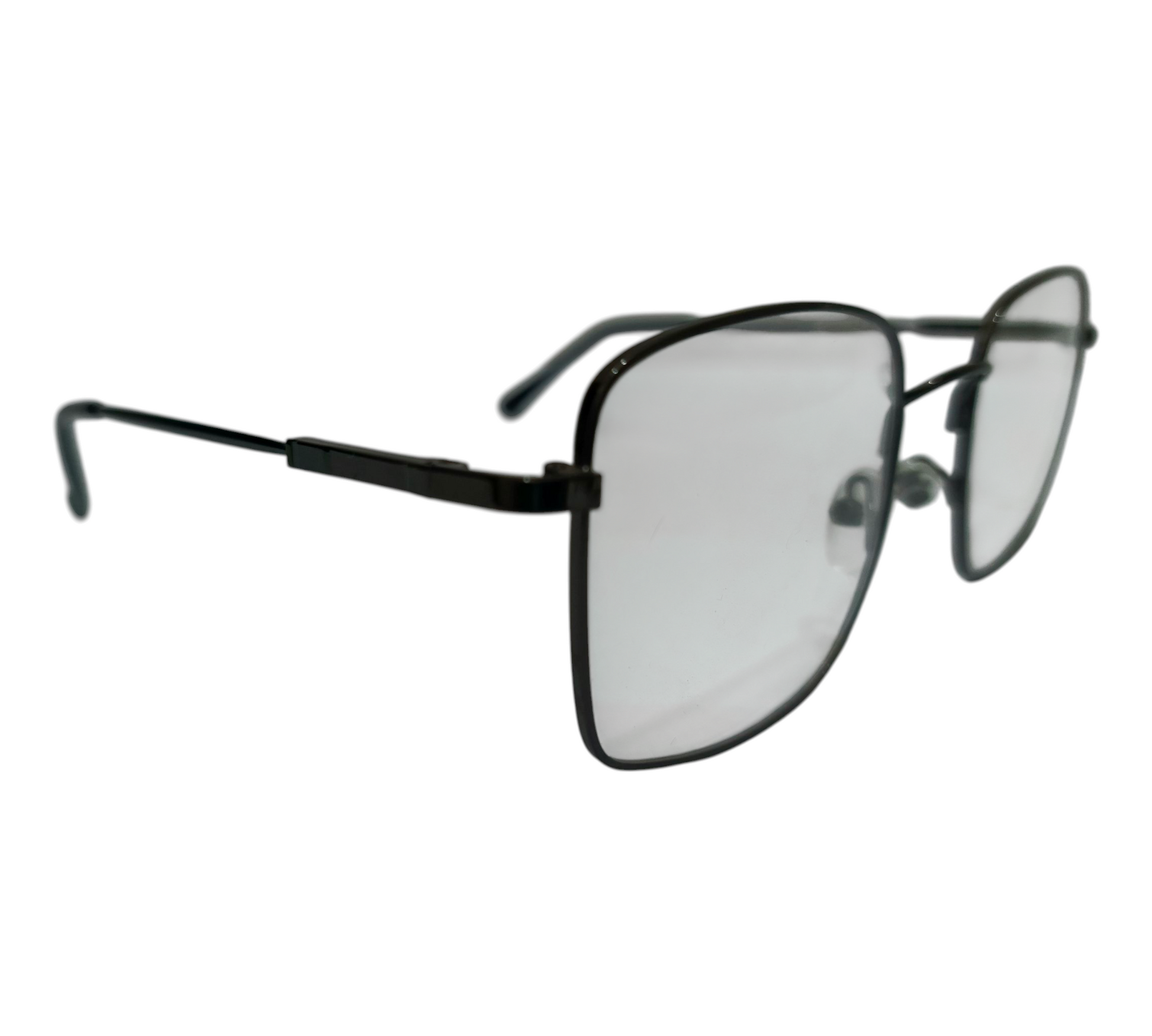 Command attention with our Sleek Black Aviator-Style Glasses. These frames offer a contemporary twist on a timeless classic, featuring a minimalist black metal frame that exudes sophistication. The slightly oversized lenses provide a wide field of vision and a fashion-forward look, perfect for both men and women seeking a versatile and stylish accessory. Whether you need them for daily wear with prescription lenses or as a chic statement piece, these durable and comfortable frames are designed to impress. Add this essential to your eyewear