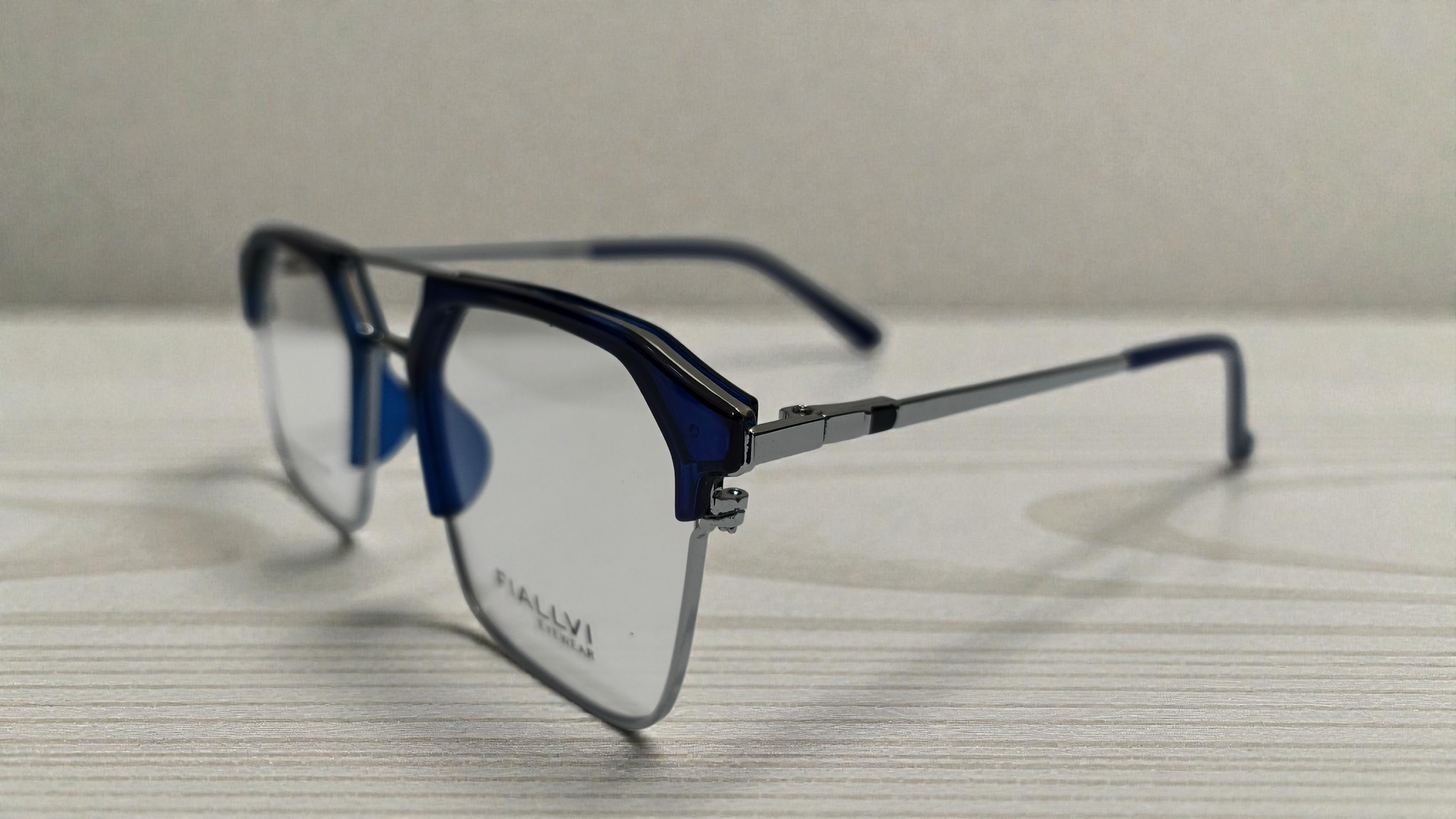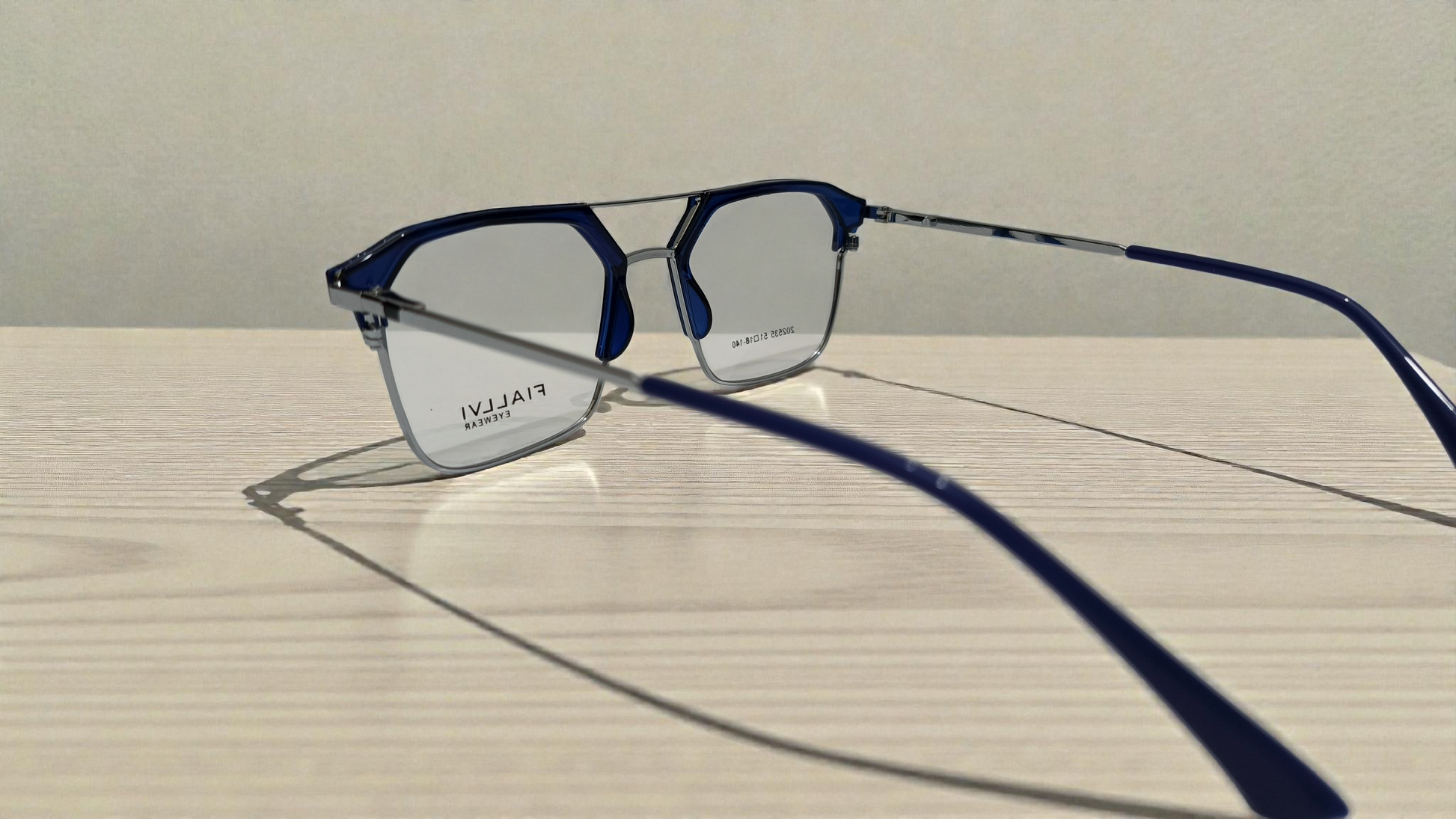 Translucent blue front with polished silver temples color urban Architect:FIALLVI Geometric Frame by Bird Eye Optics Emart