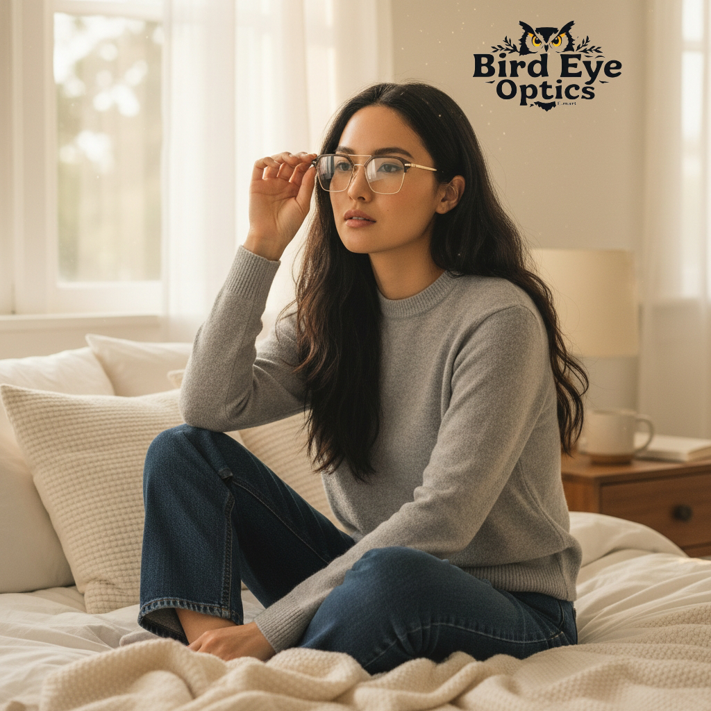 Bird Eye Optics Tip: > These frames look best on Oval, Round, and Heart-shaped faces, as the geometric angles provide a great contrast to softer facial features.