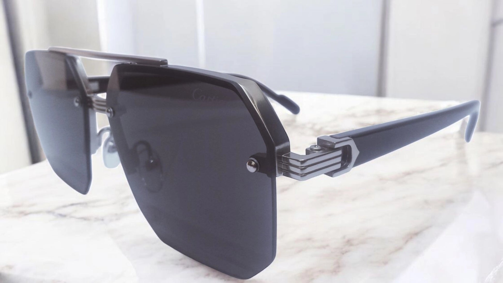 Cartier inspired Luxury Geometric Black Rimless Sunglasses – Bold Elegance for a Modern Look